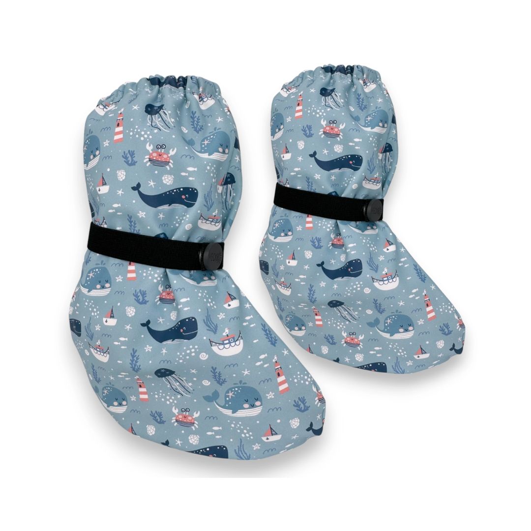 Myke og vanntette regnsokker som holder små føtter tørre og varme i vått vær. Perfekte til bruk utenpå sokker eller tøfler for barn som krabber eller sitter i vogn.