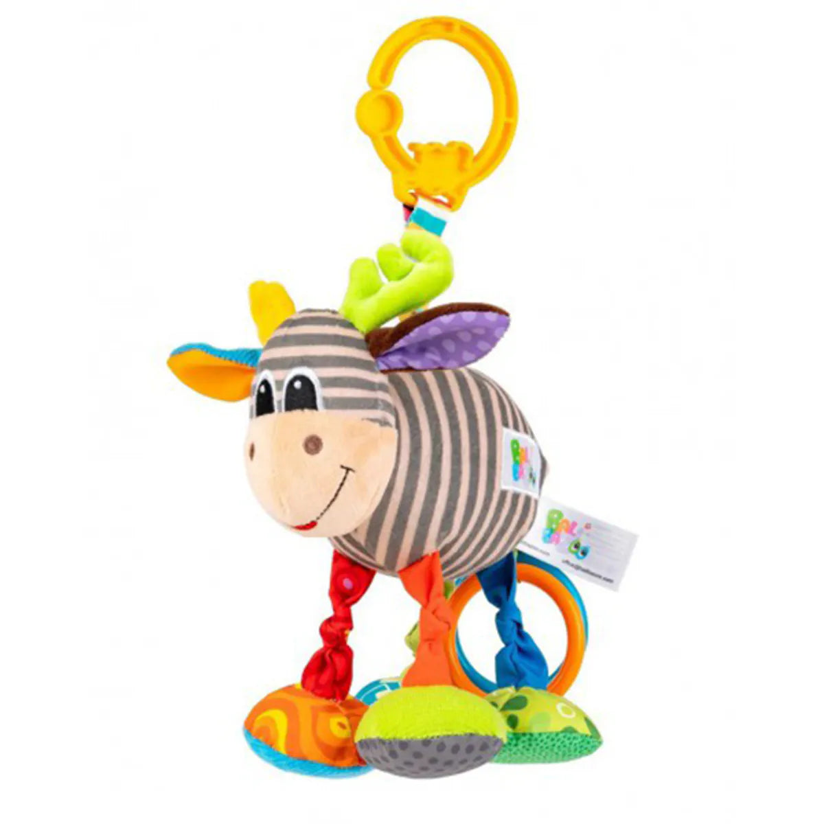 Denne livlige og fargerike lekekameraten byr på masse moro med dinglende ben, varierte teksturer og en morsom vibrasjonseffekt som garantert får frem latteren hos de minste.