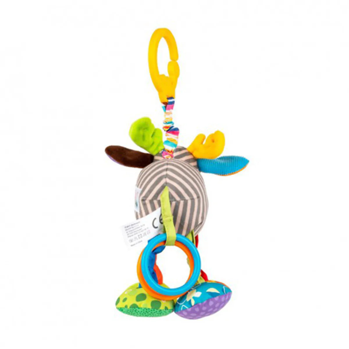 Takket være en praktisk klips kan leken enkelt festes til barnevogn, bilstol eller sprinkelseng – perfekt for lek på farten!