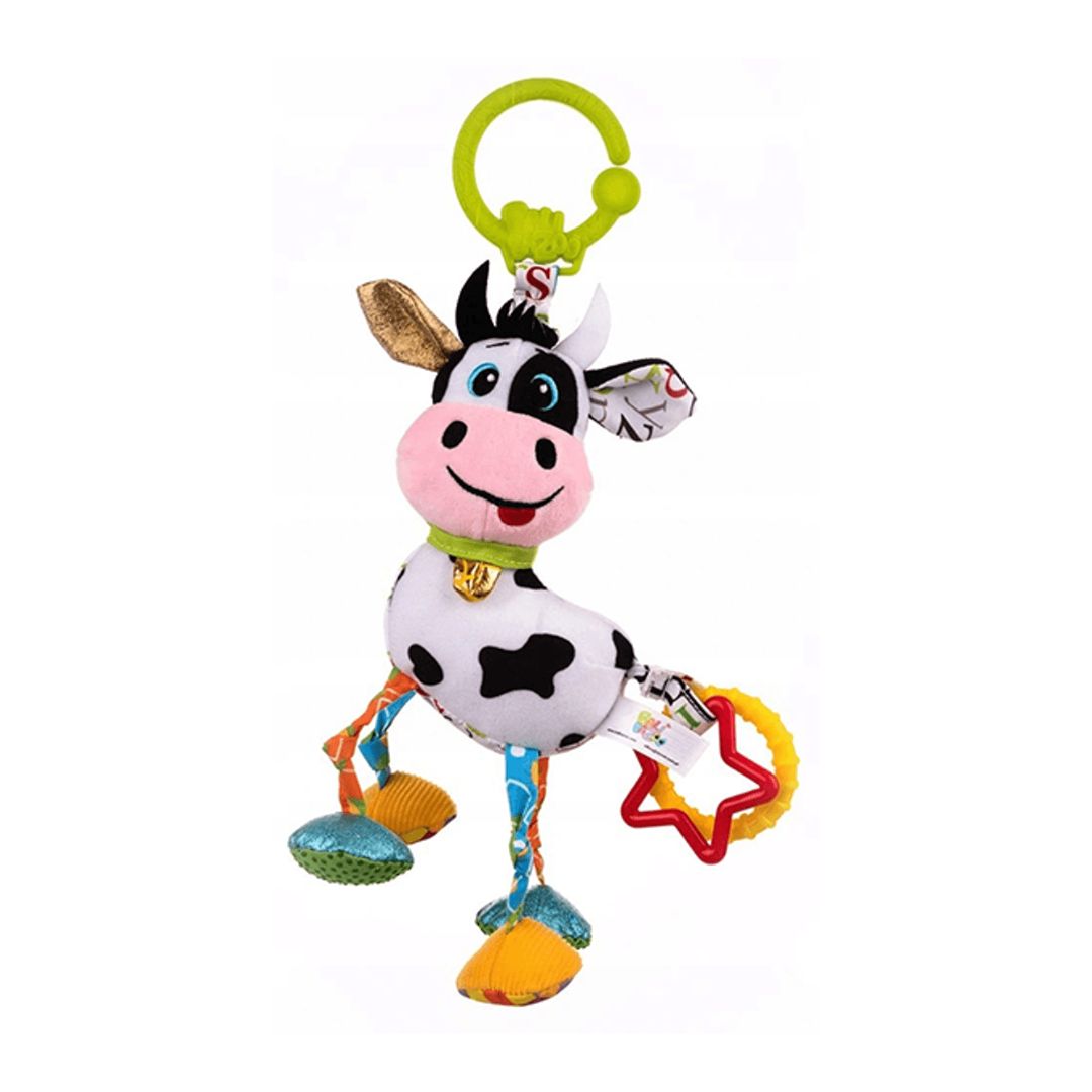 Kua Caesar er en myk og underholdende vognleke som lar barnet utforske kontrastfarger, ulike materialer og spennende lyder. Ørene rasler, hovene lager lyd, og halen har to fargerike biteringer. Leken bøyer seg når barnet drar i den og vibrerer når den spretter opp igjen. Med den praktiske klypen kan den festes på vogn, bilstol eller sprinkelseng.