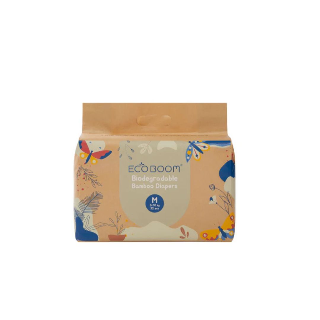 ECO BOOM engangsbleier er laget av 100 % biologisk nedbrytbare materialer og er FSC-sertifisert. Topplaget består av myk bambusviskose, fri for unødvendige kjemikalier og parabener. Til forskjell fra plast, puster bambusfibrene, noe som gjør at risikoen for bleieutslett er betydelig redusert – selv ved lengre bruk.