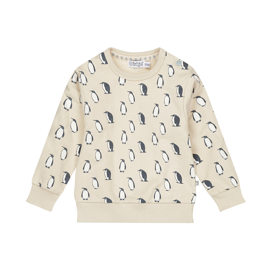 Den lysebrune genseren fra Dirkje er laget av myk bomull med stretch og passer perfekt til kjølige høst- og vinterdager. De søte pingvinene på forsiden gir et lekent og vinterlig uttrykk som barna vil elske.