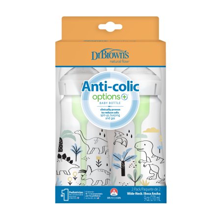 Dr. Brown’s Options+ tåteflaske Wide-Neck - Dinosaur Design. Det fullventilerte systemet fjerner de vanligste årsakene til kolikk. Den vide åpningen gjør det enkelt å fylle og rengjøre flasken. Flaskesmokken er i myk silikon og er utformet for å ligne mest mulig på mors bryst. Wideneck, 2stk x 270ml.