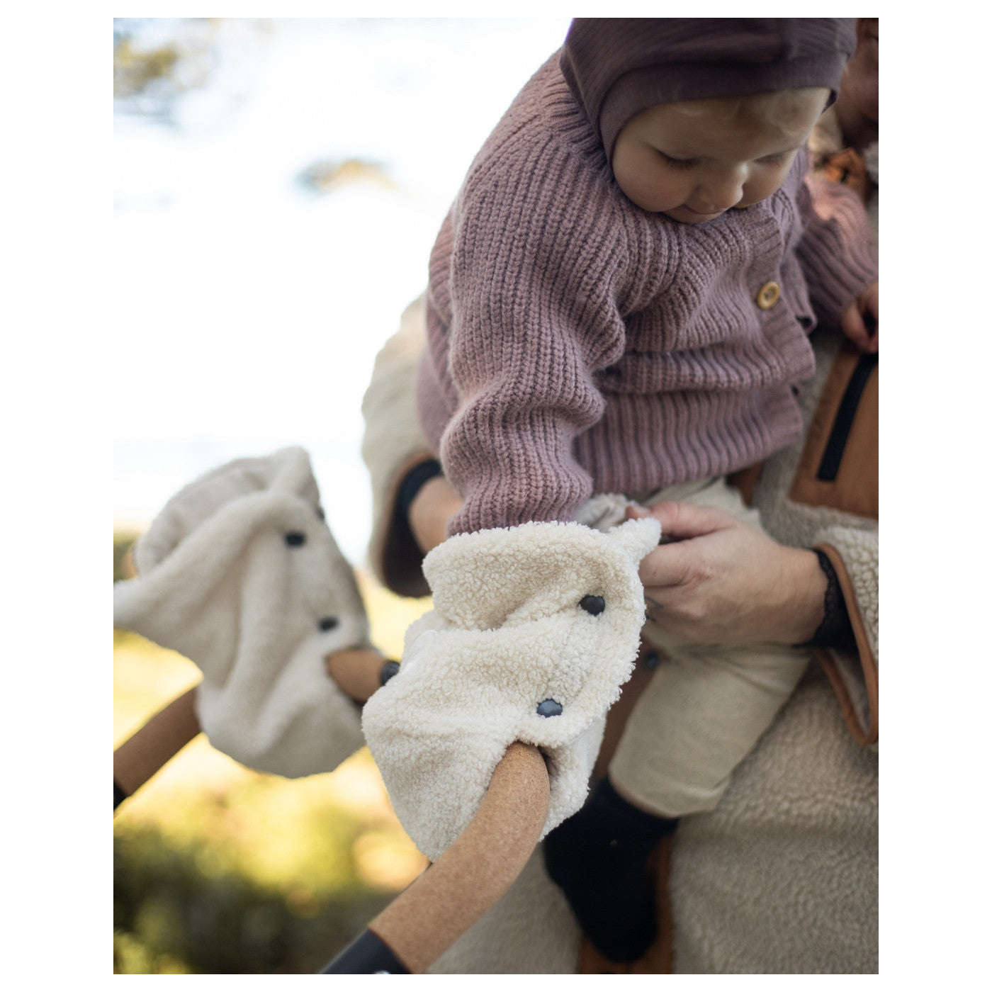 Easygrow Håndmuffer i Teddy beskytter mot vind og kulde, og gir deilig myk komfort på kalde dager.