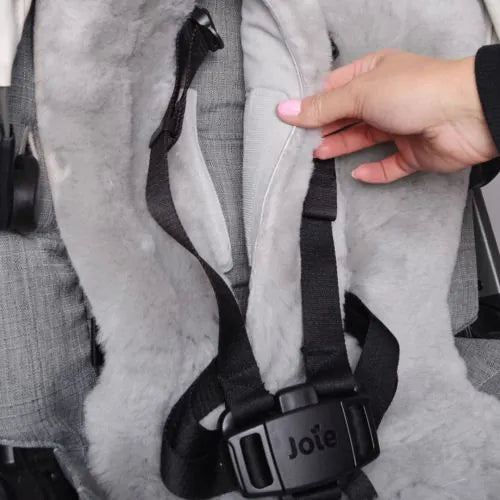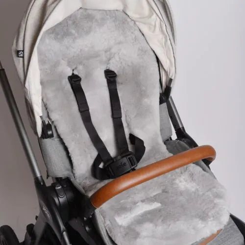 Mykt og naturlig lammeskinn som gir varme og komfort året rundt. Den nye åpningen gjør det enkelt å bruke i vogn, eller sitteløsning med seler. Perfekt for liggedelen.