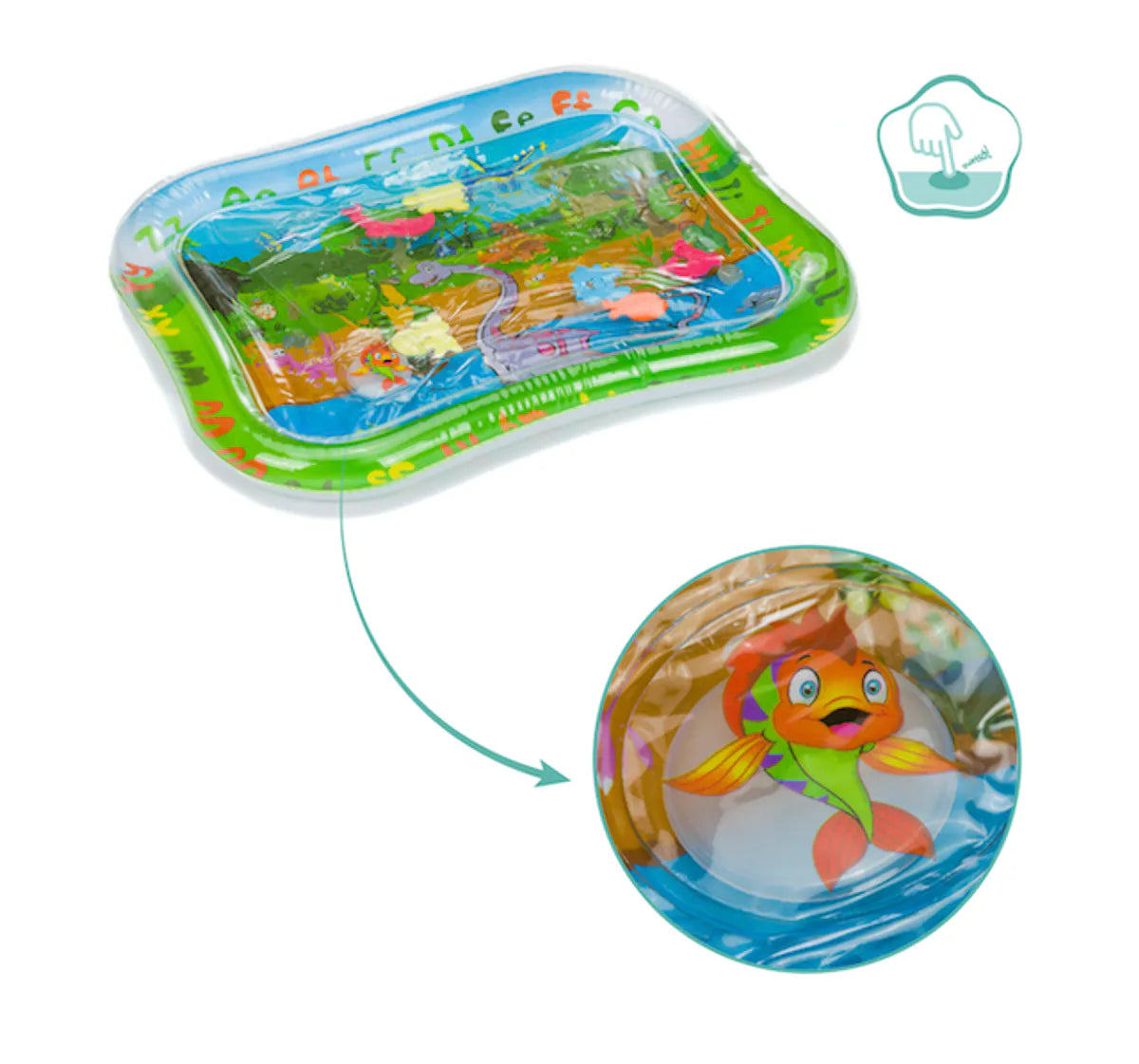 Gjør leketiden enda morsommere med denne oppblåsbare vannlekematten fra Fillikid! Matten kan delvis fylles med vann og har en innebygd pipefunksjon som stimulerer barnets sanser og motoriske ferdigheter.