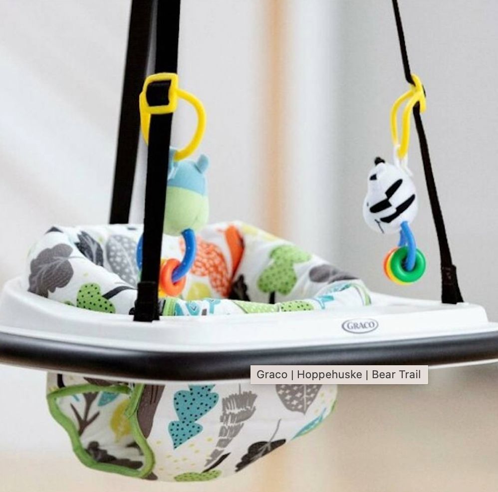 Graco Bumper Jumper er en morsom og trygg hoppegynge som enkelt festes i døråpninger med karm. Den kan flyttes mellom rom og gir barnet en aktiv og underholdende lekeopplevelse.