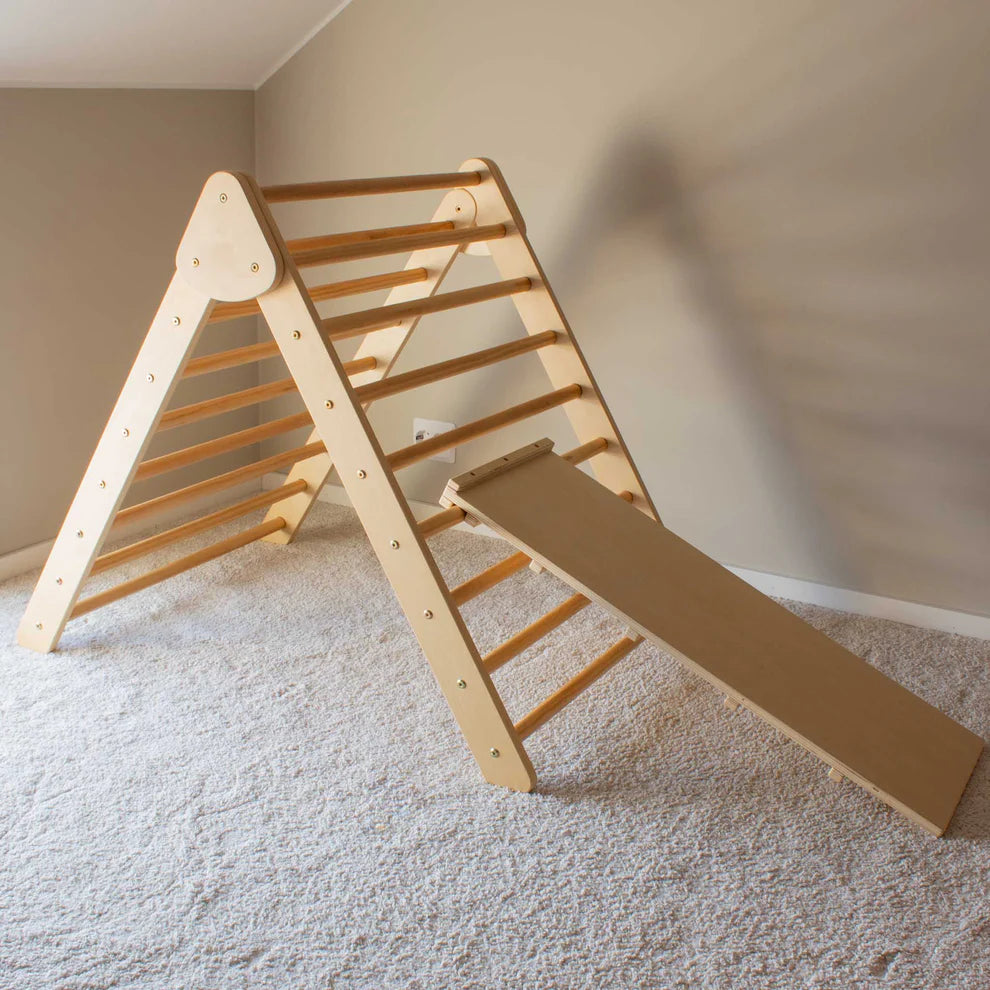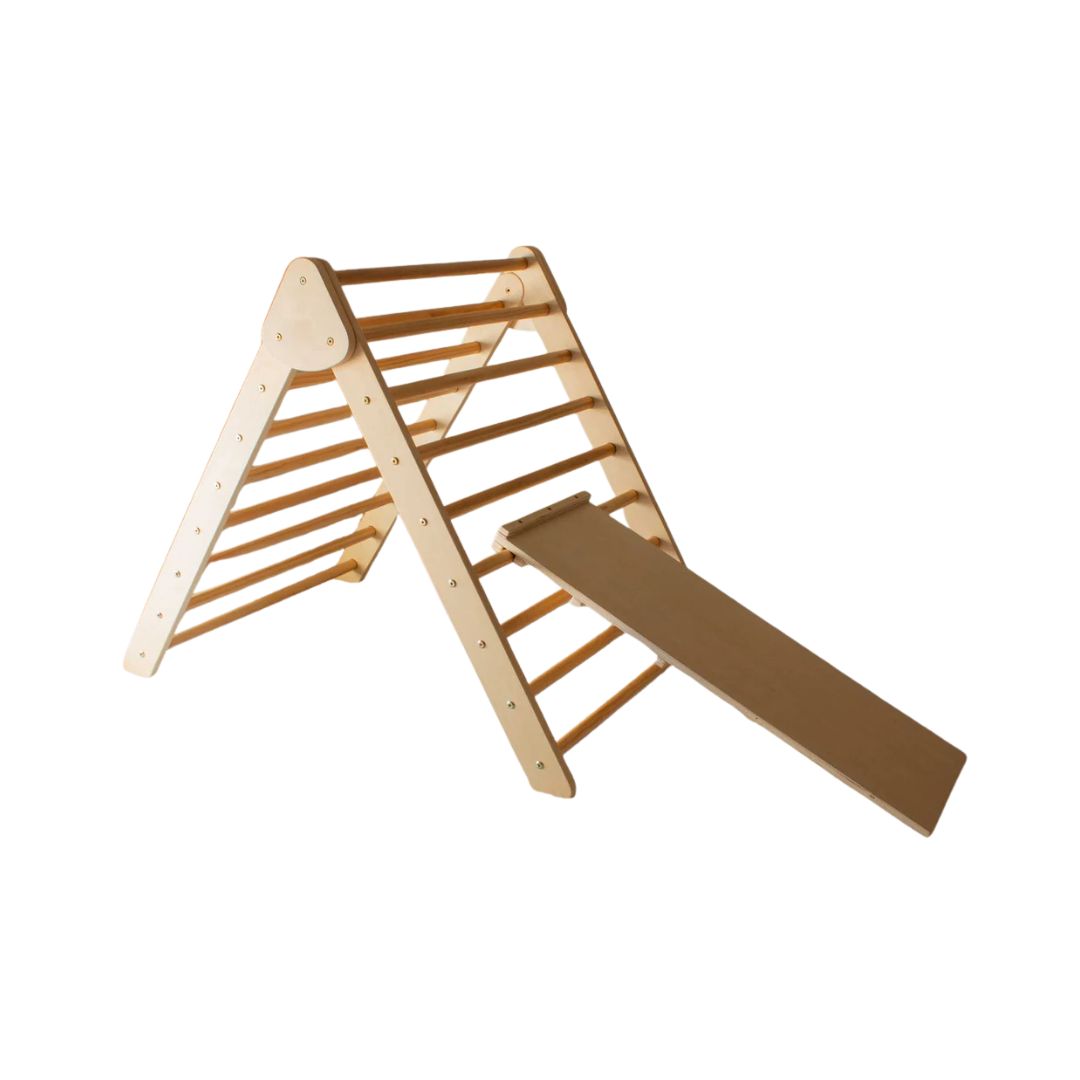 Kidera Klatretrekant med Sklie er en innovativ og pedagogisk leke som støtter barnets motoriske utvikling på en trygg og morsom måte. Med klatretrekanten kan barna utforske nye bevegelser, bygge selvtillit og utfordre seg selv – alt i trygge omgivelser hjemme.