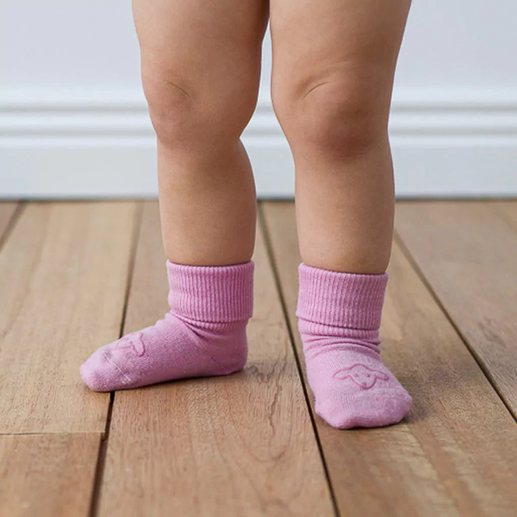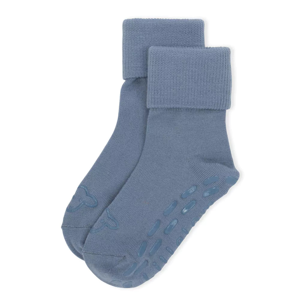 Å løpe rundt i barnehagen, eller å ta sine første skritt i ullsokker, kan være en utfordring. Derfor kan det være lurt å bruke sklisikre sokker! Våre ullsokker er laget av høykvalitets merinoull som puster, og derfor holder føttene varme og komfortable hele dagen, uten å bli klamme.