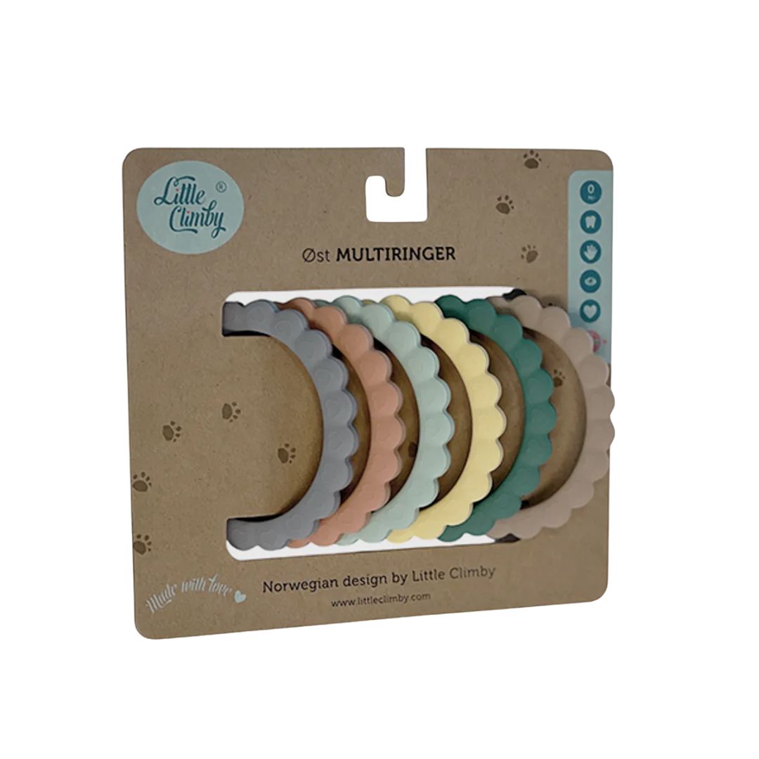 - Ringene er en gøyal leke i seg selv, men kan også brukes til å henge opp barnets favorittleke på aktivitetsstativet, bilstolen, senga eller vogna.