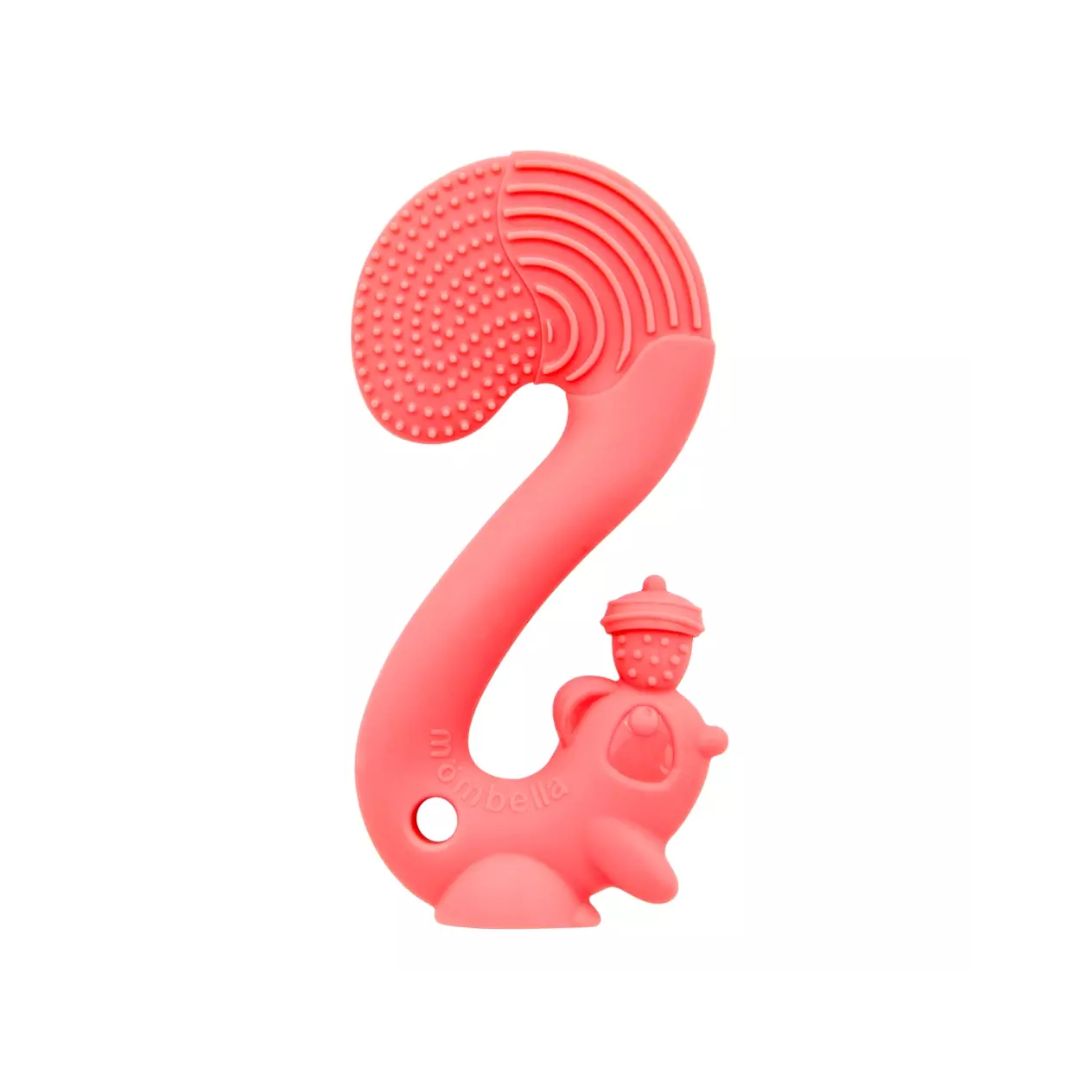 Mombella Squirrel er en trygg, myk og fleksibel biteleke formet som et søtt ekorn i S-design. De ulike teksturene lindrer og stimulerer ømme gommer, samtidig som leken gir barnet en morsom sanseopplevelse.