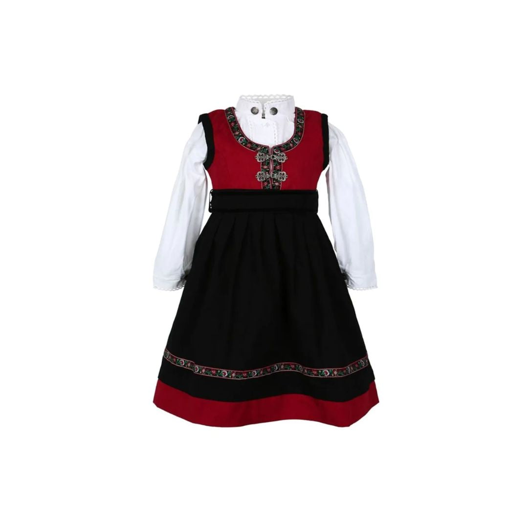 En nydelig og tradisjonell festdrakt til de minste - perfekt til 17. mai, dåp, bursdag eller andre store anledninger. Festdrakten har vakre detaljer på krage og mansjetter, og kommer som komplett sett med kjole og skjorte.