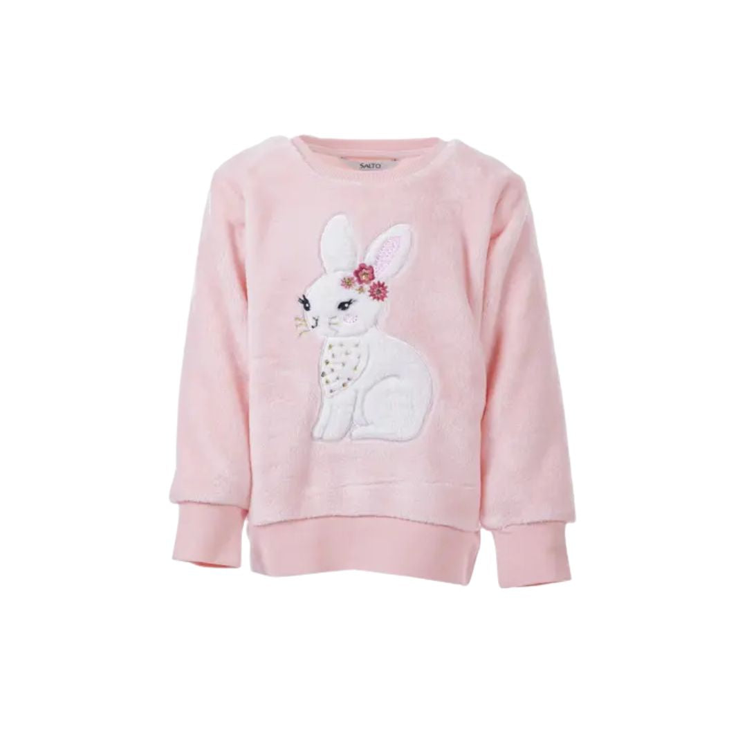 Søt og myk genser fra Salto med nydelig kaninmotiv på forsiden.